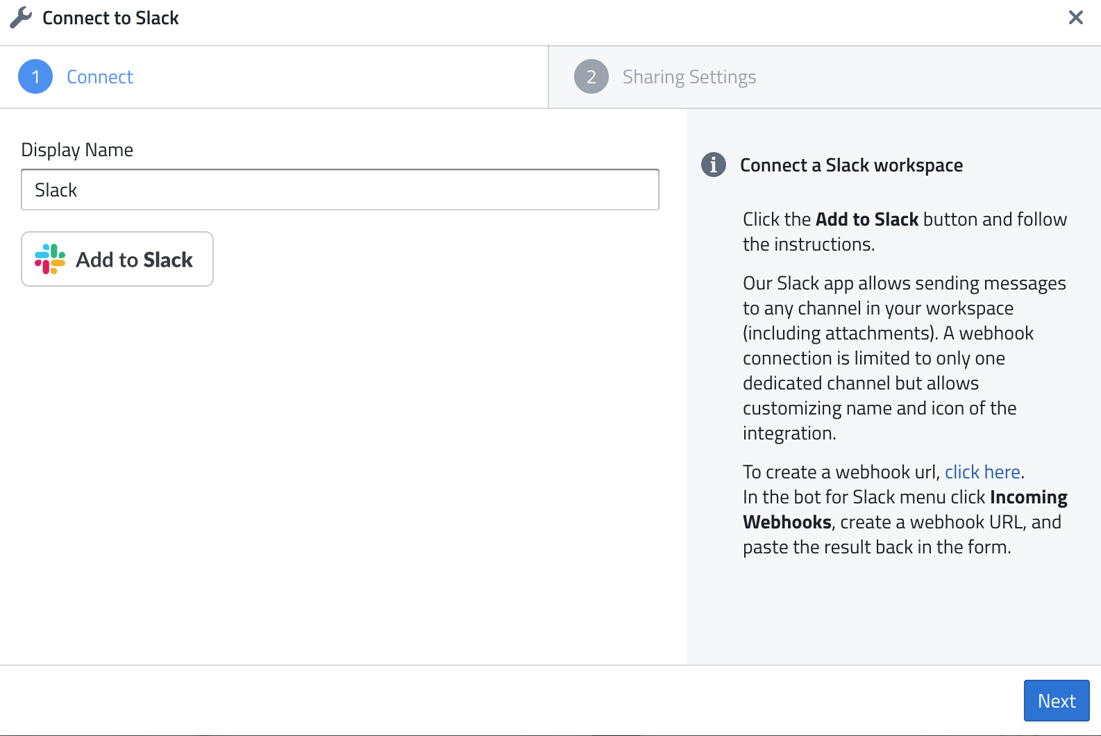 Creating a Slack Connection: