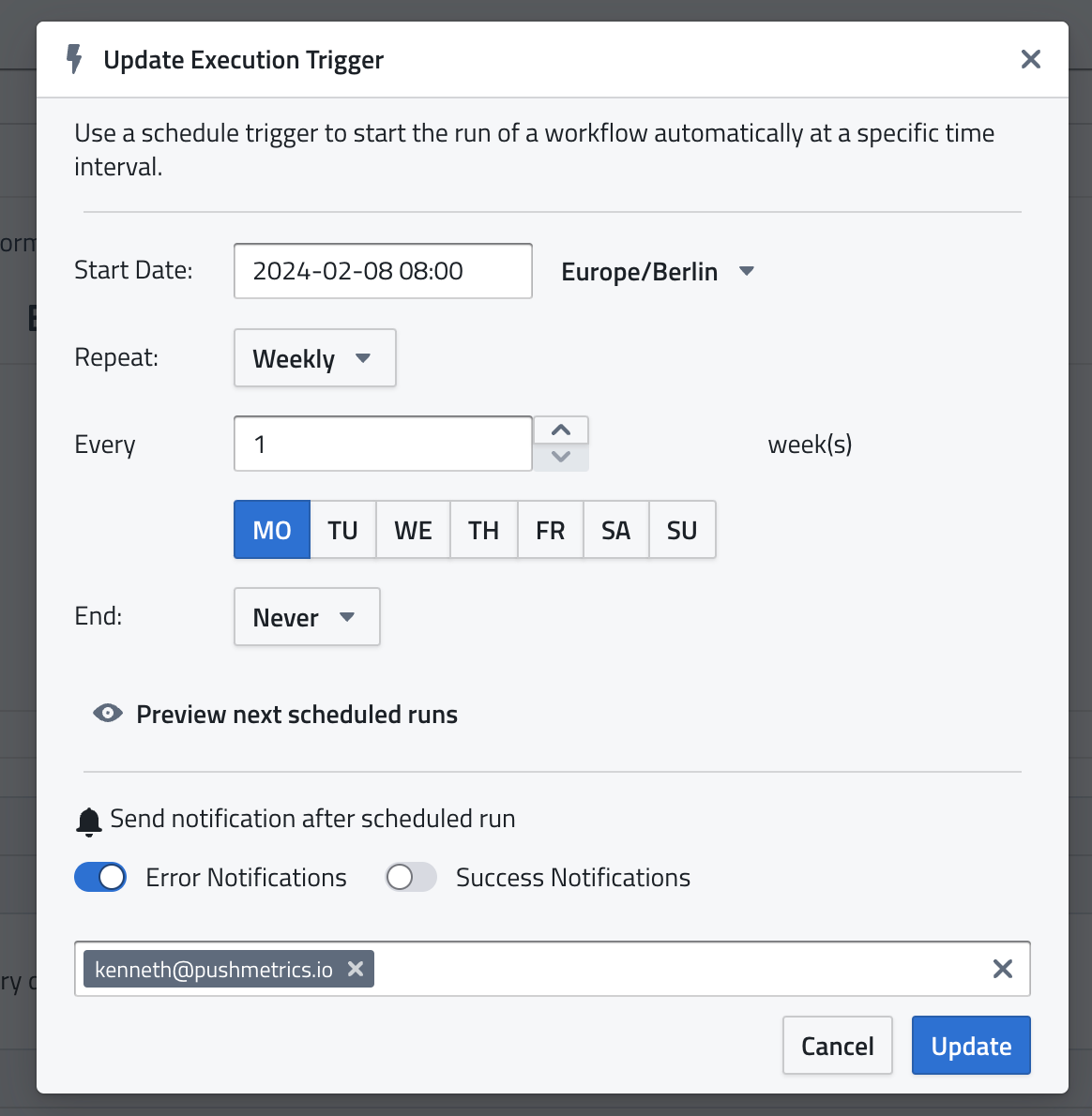 4. Defining a Schedule or a Webhook as a trigger for your report.